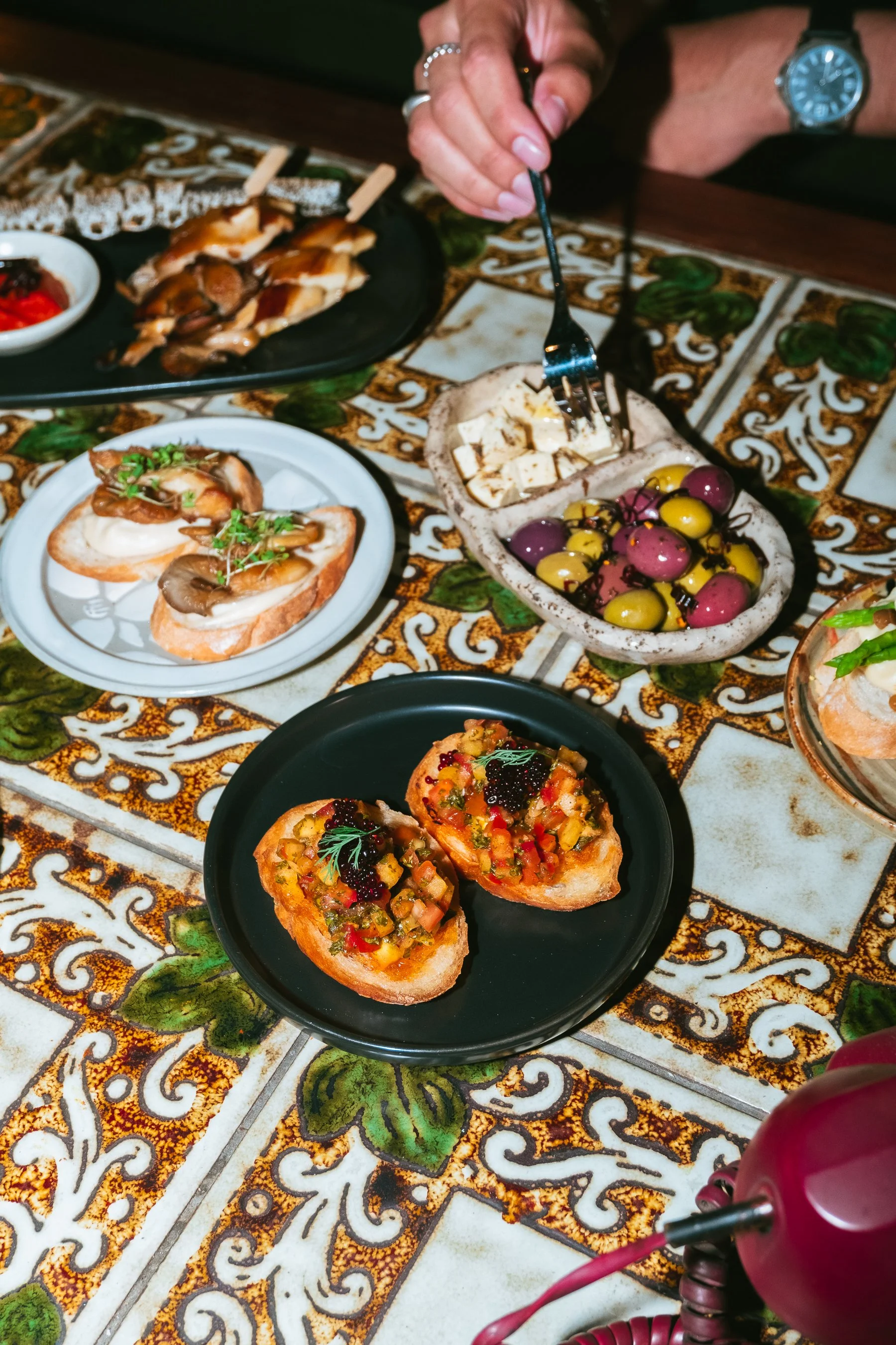 A curated selection of our homemade breads, cultured cheeses, and marinated accompaniments, inspired by the Mediterranean countryside.