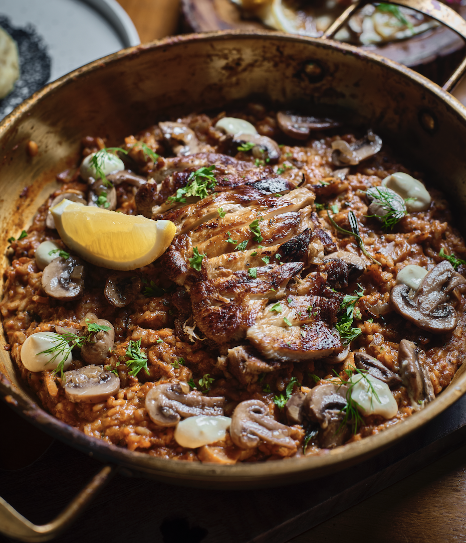 Redondo Rice, Juicy Seared Organic Mushroom Steak, Stewed Tomatoes, White Wine, Lemon, Smoked Paprika, Herbs, Cracked Black Pepper, Sea Salt (Serves 4 - 6 People. Please Allow 25 Minutes.)